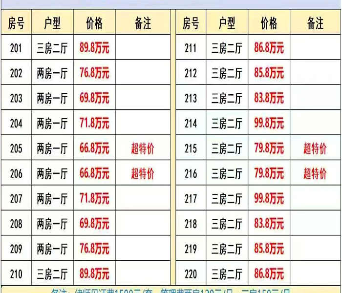 管理費:二房120、三房150